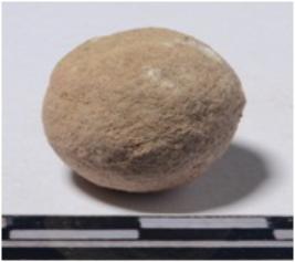 | Description / विवरण | A small stone sling ball, round in shape of rough surface. |