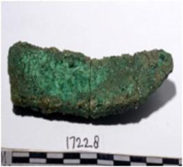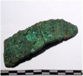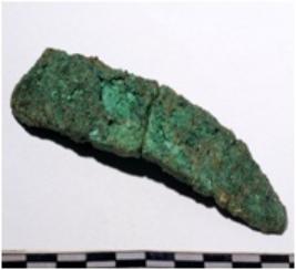 | Description / विवरण | A fragment of a mended copper knife rectangular in section sharp edge of rough surface. |