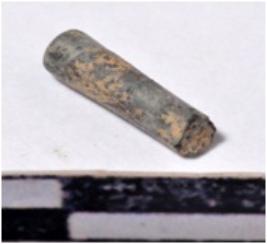 | Description / विवरण | A fragment of a stone drill bit, circular in section, broken from one end of smooth surface. |