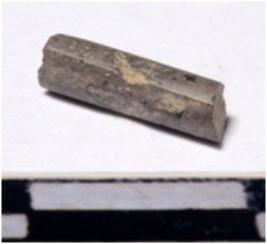 | Description / विवरण | A fragment of a stone drill bit circular in shape broken from both end of smooth surface. |
