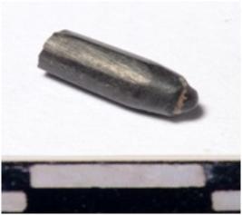 | Description / विवरण | A fragment of a stone drill bit circular in section broken from one end of smooth surface. |