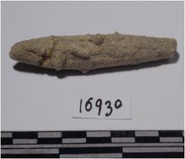 | Description / विवरण | A fragment of a bone point having broken pointed one end, circular in section of rough surface. |