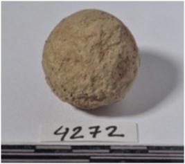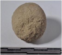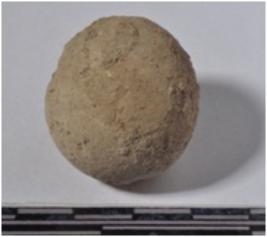 | Description / विवरण | A stone sling ball, round in shape of rough surface. |