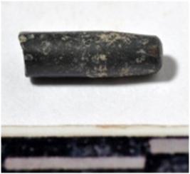| Description / विवरण | A fragment of a stone drill bit, circular in section, broken from one end of rough surface. |