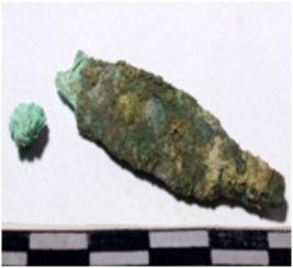 | Description / विवरण | A fragment of a copper arrow head, having pointed one end other broken of rough surface. |
