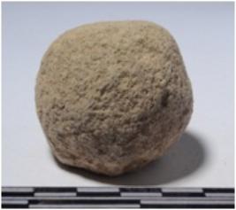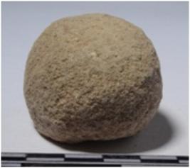 | Description / विवरण | A fragment of a stone sling ball, circular in section of rough surface. |