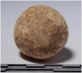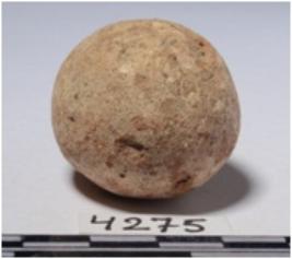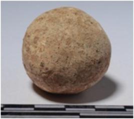 | Description / विवरण | A stone sling ball, round in shape of smooth surface. |