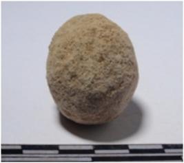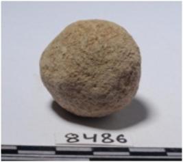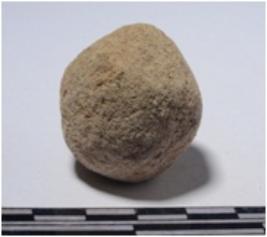 | Description / विवरण | A stone sling ball, round in shape of rough surface. |