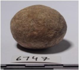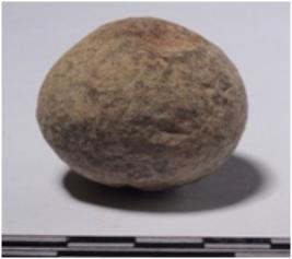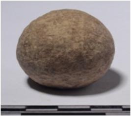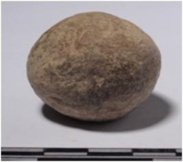 | Description / विवरण | A stone sling ball round in shape of rough surface. |