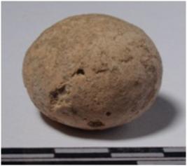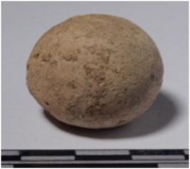 | Description / विवरण | A stone sling ball round in shape of rough surface. |