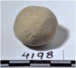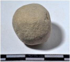 | Description / विवरण | A stone sling ball, round in shape of rough surface. |