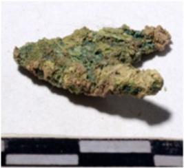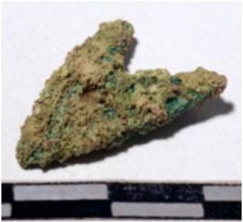 | Description / विवरण | A copper arrow head, triangular shaped, pointed end of rough surface. |