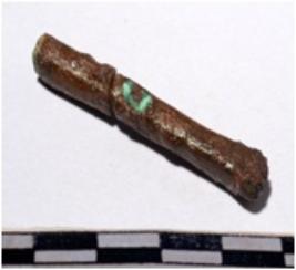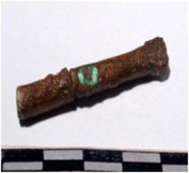 | Description / विवरण | A fragment of a mended copper chisel Circular in section sharpen at one end of rough surface. |