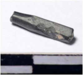 | Description / विवरण | A fragment of a stone drill bit circular in section broken from one end of smooth surface. |