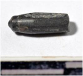 | Description / विवरण | A fragment of a stone drill bit, circular in section, broken from one end of smooth surface. |