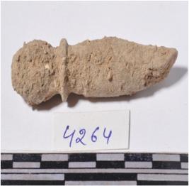 | Description / विवरण | A fragment of a bone point having round head lower end broken rough surface. |