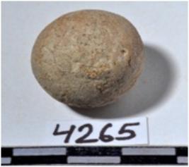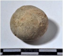 | Description / विवरण | A terracotta sling ball, round in shape of smooth surface. |