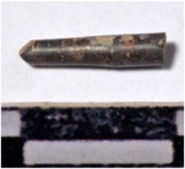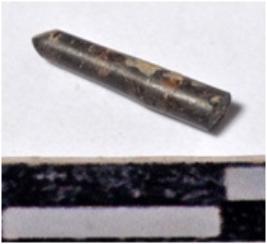 | Description / विवरण | A fragment of a stone drill bit, circular in section, broken from one end of smooth surface. |