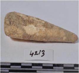 | Description / विवरण | A fragment of a stone drill bit, circular in section, broken from both end of smooth surface. |