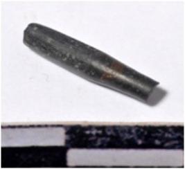 | Description / विवरण | A fragment of a stone drill bit, circular in section, broken from both end of smooth surface. |