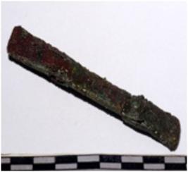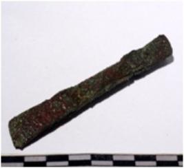 | Description / विवरण | A copper mended chisel, sharpened one end, rectangular in section of rough surface. |