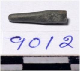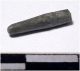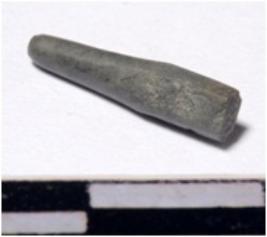 | Description / विवरण | A fragment of a stone drill bit circular in section pointed on one end of smooth surface. |