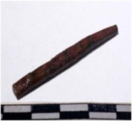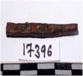 | Description / विवरण | A fragment of a mended copper nail, pointed one end, rectangular in section of smooth surface. |