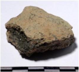 | Description / विवरण | A fragment of a copper crusible of rough surface. |