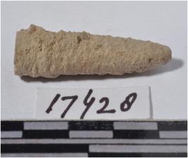 | Description / विवरण | A fragment of bone point having pointed one side, circular in section of rough surface. |