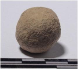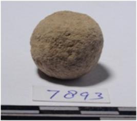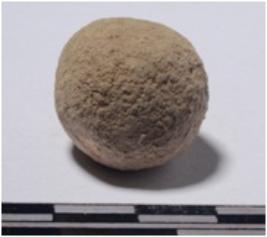| Description / विवरण | A stone sling ball round in shape of rough surface. |