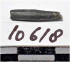 | Description / विवरण | A fragment of a stone drill bit circular in section, broken from one end of smooth surface. |