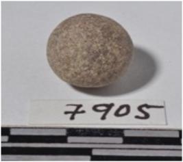 | Description / विवरण | A stone sling ball, round in shape of smooth surface. |