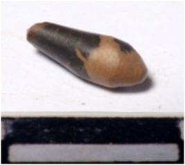 | Description / विवरण | A fragment of a stone drill bit circular in section pointed on one end of smooth surface. |