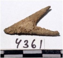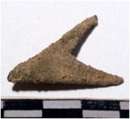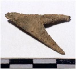 | Description / विवरण | A copper arrow head triangular in shape pointed at one end of rough surface. |