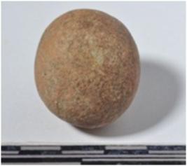 | Description / विवरण | A stone sling ball round in shape of smooth surface. |