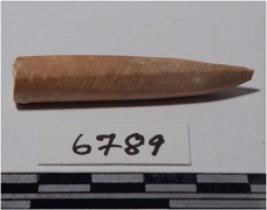 | Description / विवरण | A fragment of a bone point, pointed one end, circular in section of polished surface. |