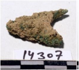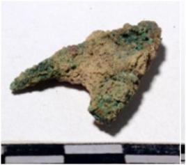 | Description / विवरण | A fragment of a copper arrow head triangular in shape having pointed at one end of rough surface. |
