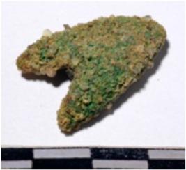 | Description / विवरण | A fragment of a copper arrow head triangular in shape of rough surface. |