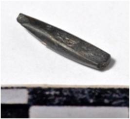 | Description / विवरण | A fragment of a stone drill bit, circular in section broken both end of smooth surface. |