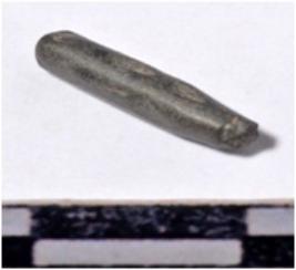 | Description / विवरण | A fragment of a stone drill bit, circular in section, broken from both end of smooth surface. |