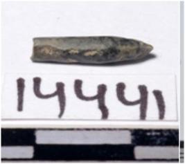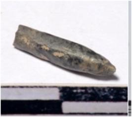 | Description / विवरण | A fragment of a stone drill bit circular in section pointed at one end broken from one end of smooth surface. |