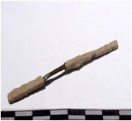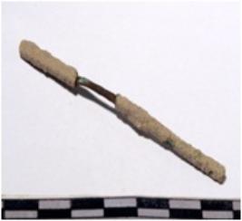 | Description / विवरण | A copper chisel sharpen at one end of rough surface. |