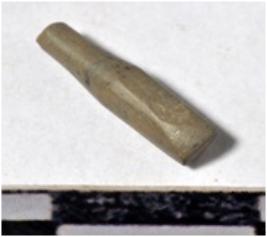 | Description / विवरण | A fragment of a stone drill bit, circular in section, broken from both end of smooth surface. |