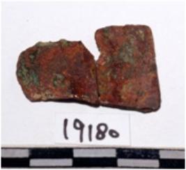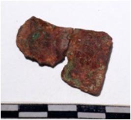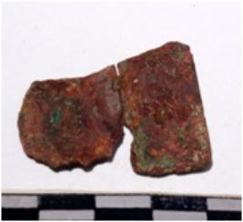 | Description / विवरण | A fragment of a mended copper blade Sharp edges end of rough surface. |