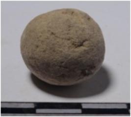 | Description / विवरण | A stone sling ball, round in shape of smooth surface. |