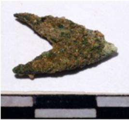 | Description / विवरण | A copper arrow head triangular in shape and size of rough surface. |