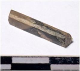 | Description / विवरण | A fragment of a stone drill bit circular in section broken from both end of smooth surface. |