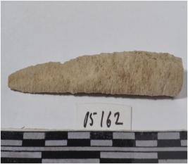 | Description / विवरण | A fragment of a bone point, pointed one side and rough surface. |