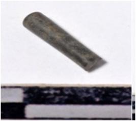 | Description / विवरण | A fragment of a stone drill bit, circular in section, broken from both end of smooth surface. |