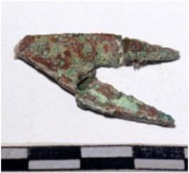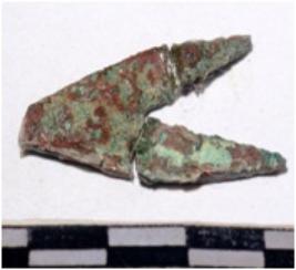 | Description / विवरण | A fragment of a copper arrow head triangular in shape of rough surface. |